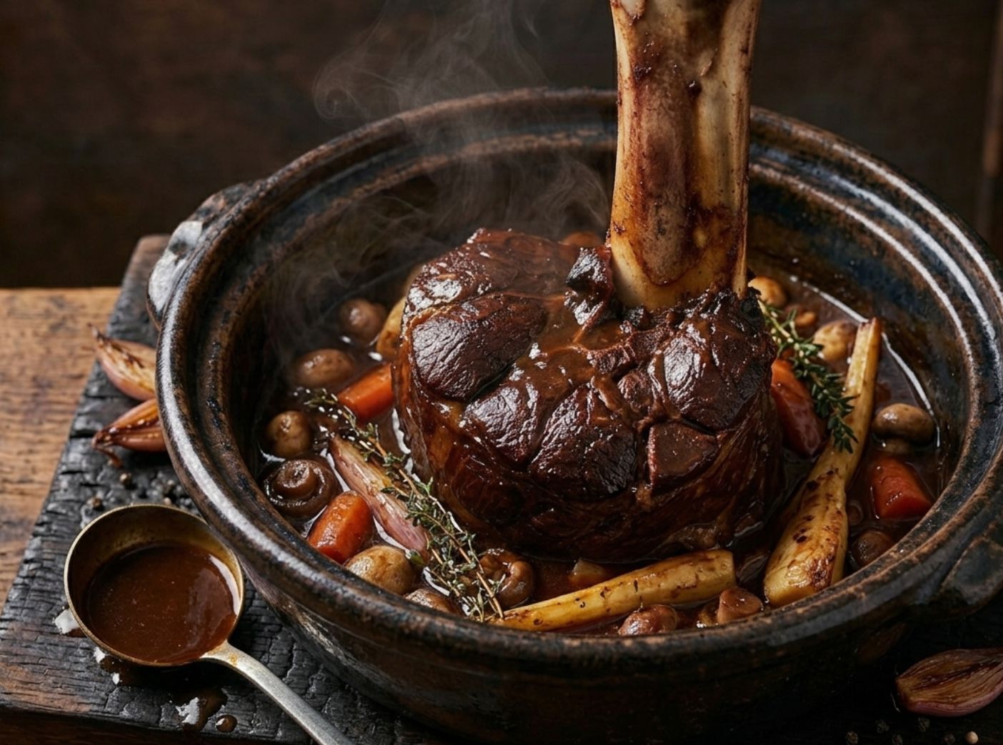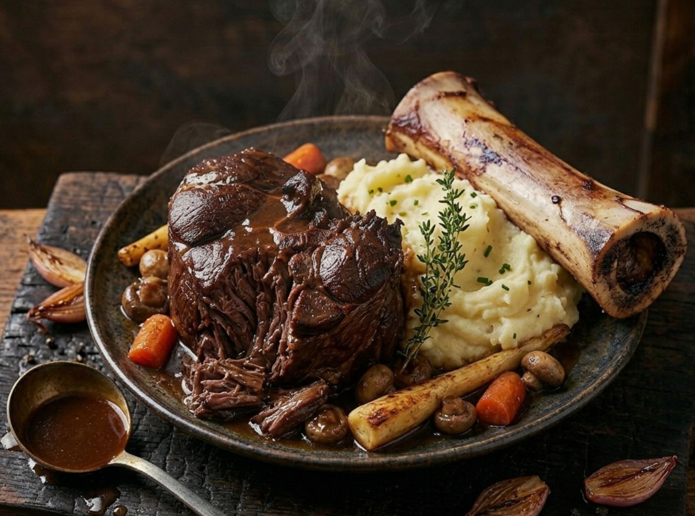 - Rindermark im Knochen – schmilzt beim Garen und gibt dem Fleisch intensives Aroma
