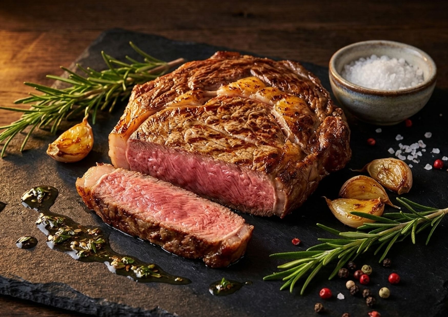- Edles Steak aus der Hochrippe mit charakteristischem Fettauge und feinen Fettäderchen