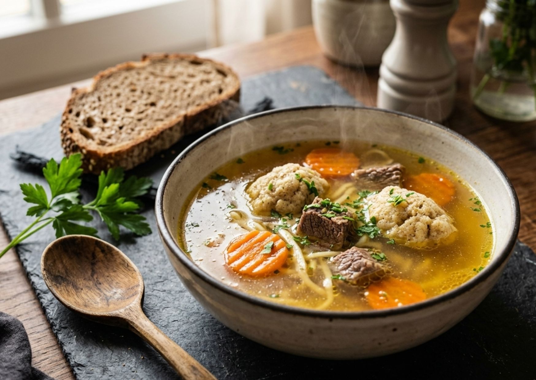 - Natürlicher Fett- und Knochenanteil – gibt der Brühe Tiefe, Kollagen und Gelatine