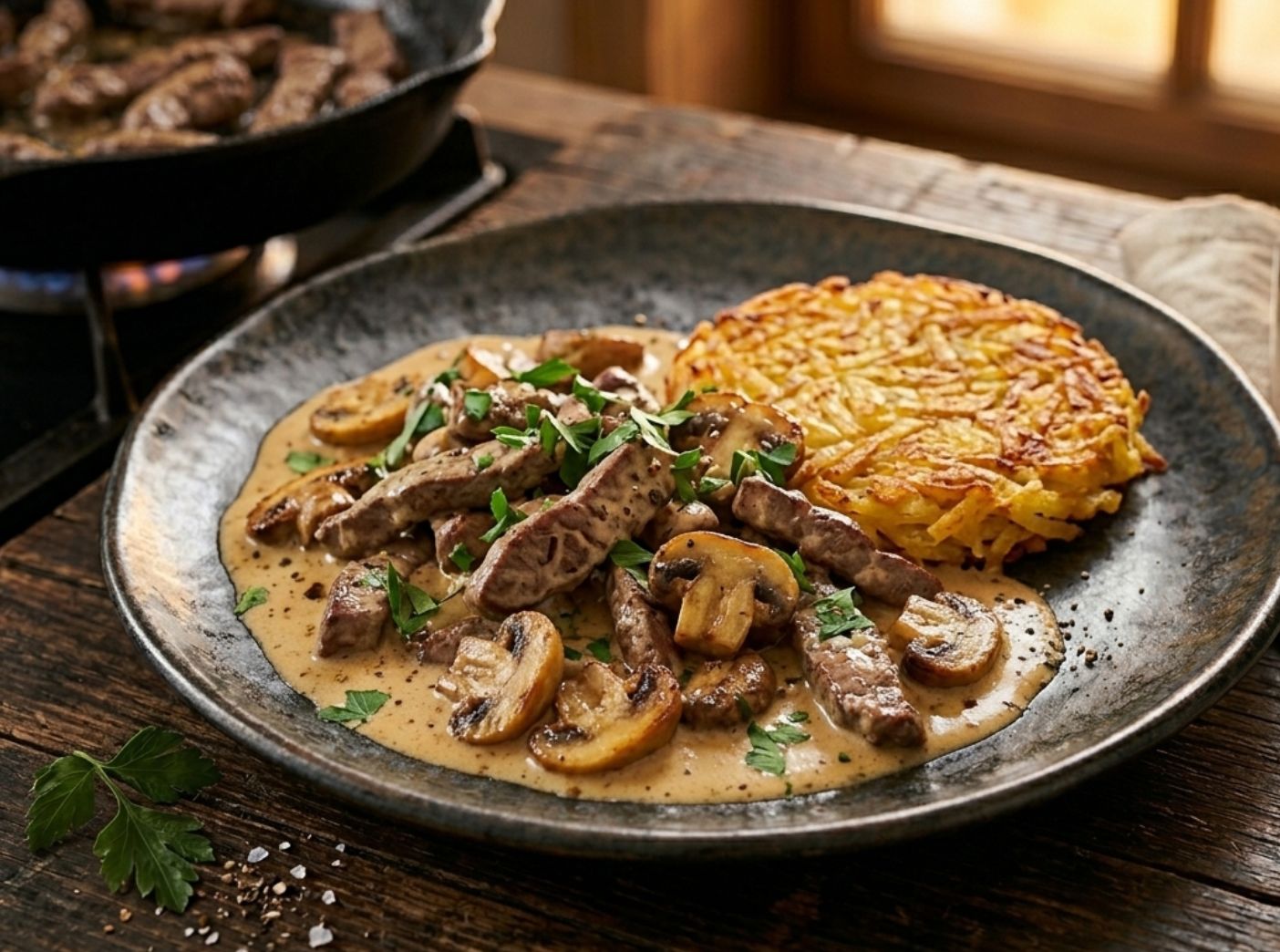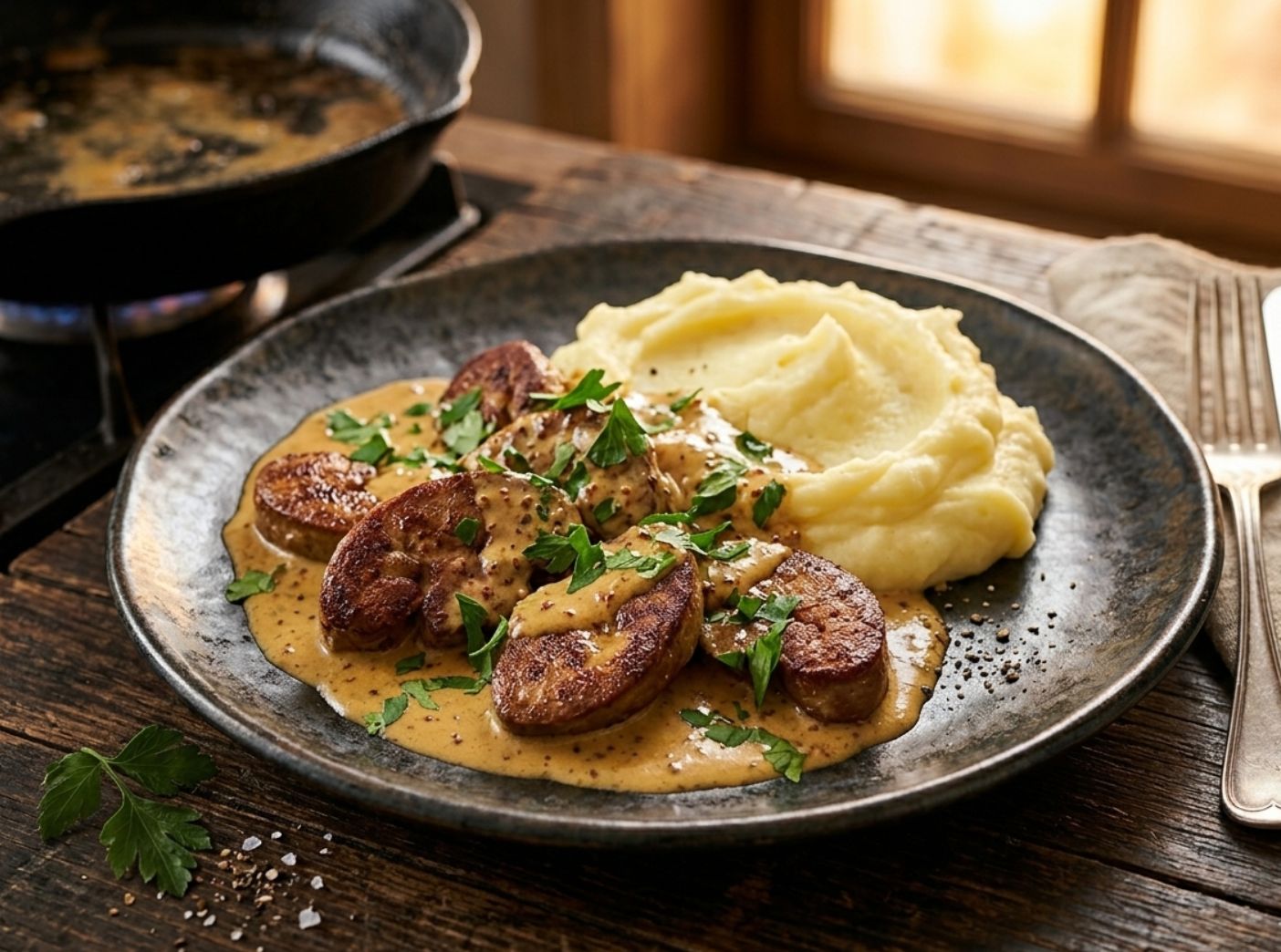 Die klassische Zubereitung: Niere in fingerdicke Scheiben schneiden, wässern, trocken tupfen und in sehr heißem Butterschmalz scharf anbraten – maximal 2–3 Minuten pro Seite. Nicht länger, sonst wird sie zäh. Mit einer schnellen Senfsoße aus Schalotten, Senf, Sahne und Thymian ist ein vollständiges Gericht in 15 Minuten fertig. Auch als Nieren-Geschnetzeltes mit Champignons und Petersilie ein Klassiker.