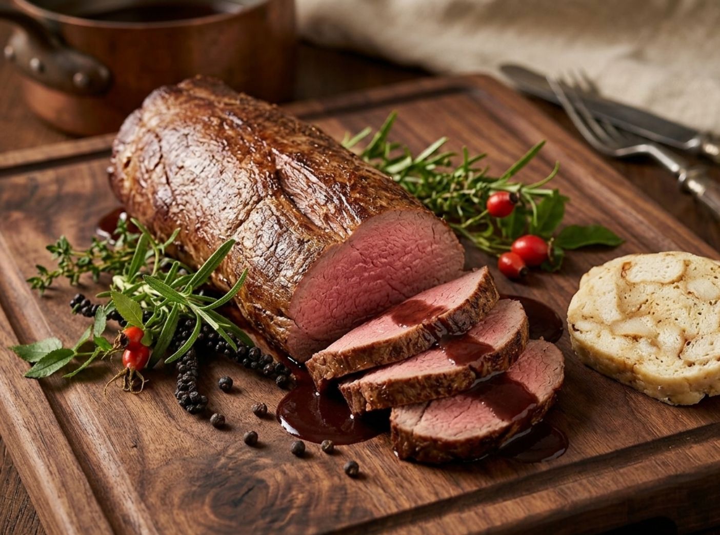 Rosa gebraten mit selbstgemachter Rotweinsauce und Böhmischen Serviettenknödeln – ein Klassiker. Oder als Küchen-Showstopper: Rehrücken im Strudelteig mit Waldpilzen. Auch modern mit Risotto und gebratenen Birnenwürfeln ist das Rehfleisch eine überzeugende Hauptrolle.