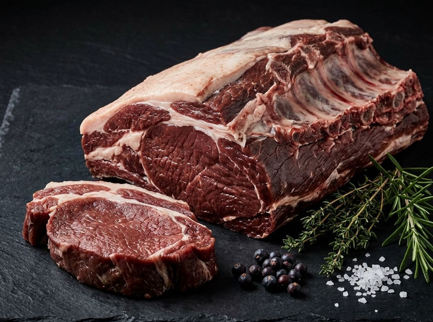 - Rückenstück im Ganzen mit Knochen – für maximalen Geschmack beim Braten