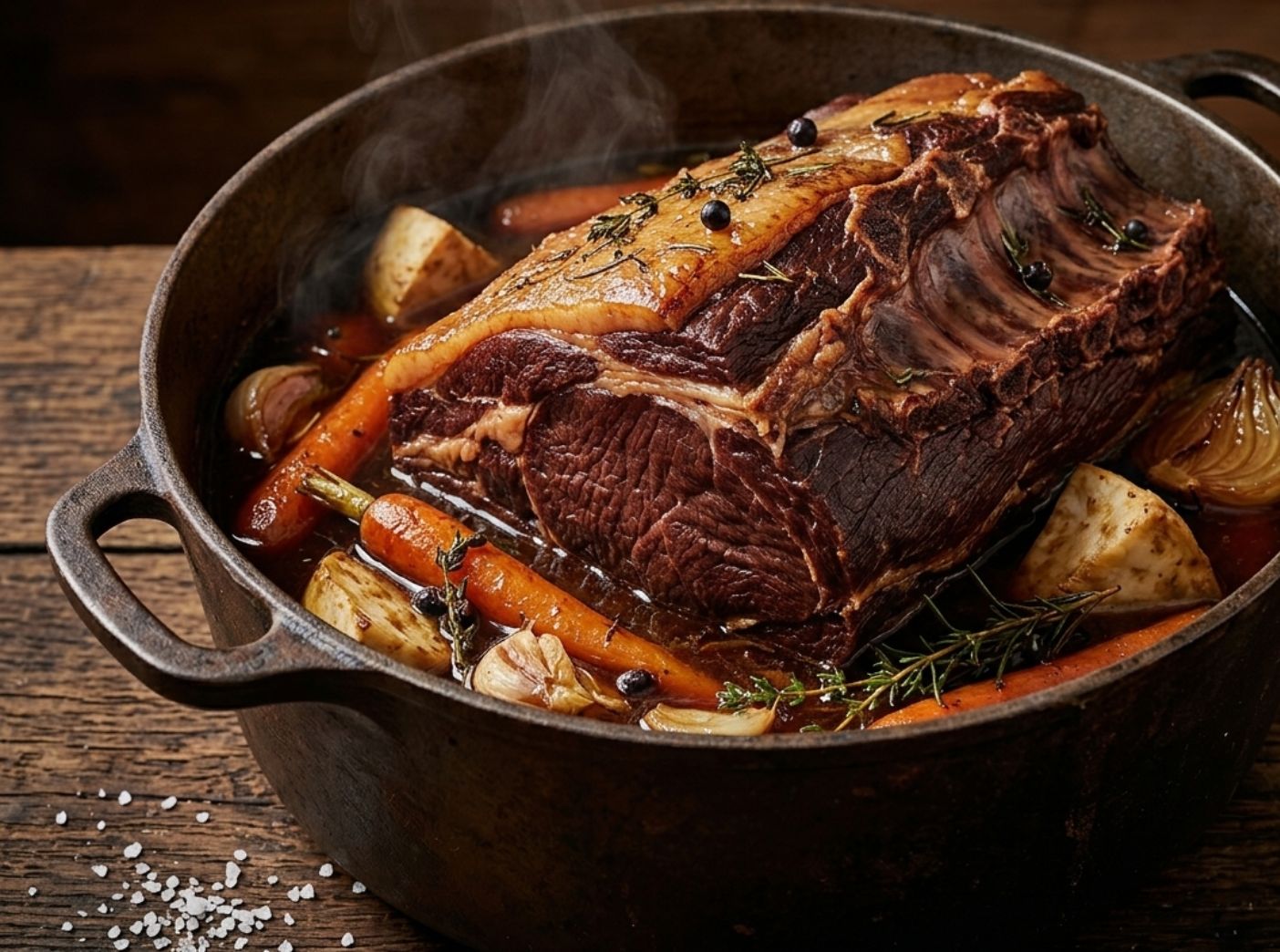 Das aufliegende Fettgewebe sollte bei der Zubereitung unbedingt erhalten bleiben: Es hält das Fleisch saftig und gibt beim Garen zusätzliche Aromen ab – ganz wie es bei einem klassischen Braten sein soll.